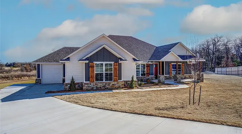 Escape the hustle and bustle in this charming 4-bedroom, 3-bathroom haven in Blanchard, OK. Nestled in a brand-new neighborhood boasting just 10 exclusive, 3/4 acre lots, this house sets the stage for comfortable living. Say hello to the primary bedroom oasis, along with spacious living areas perfect for both relaxation and entertainment. Enjoy the freedom to unleash your creativity with shops allowed on the property. Embrace modern living as this home comes pre-wired for solar panels and smart home systems. Additionally, the property's pre-plumbed for propane conversion, ensuring convenience and efficiency. Say goodbye to dry lawns with built-in sprinkler system drawing from well water. Step inside to discover 2579 sqft of carefully designed living space. Whether whipping up a meal in the well-appointed kitchen or unwinding in the cozy living room, every moment spent here feels just right. Don't miss out on the opportunity to call this house your home sweet home!