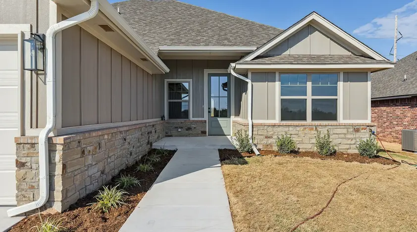 This 2,057 sq. ft. new construction home comes with a 10-year home warranty by RWC (Residential Warranty Company) and is ready for move-in. Located on a quiet cul-de-sac conveniently near the University of Oklahoma, this 4-bedroom, 2.5-bathroom home offers an open floor plan with a cozy gas fireplace in the living area. The beautiful features include quartz countertops, modern cabinetry with designer colors, stainless steel built-in dishwasher, gas stove, oven, and microwave. The large island with seating and spacious dining area makes it perfect for gatherings. Thoughtful details like built-in storage cabinets, modern fixtures, and stylish hardware are found throughout. This split-bedroom plan provides privacy with the primary suite separate from the other bedrooms. The primary bathroom boasts double vanities plus a separate tub and shower, along with a convenient pass-through from the primary closet to the laundry room just off the mudroom. Additional highlights include a powder bath, oversized 3-car garage, and a large covered back patio. You’ll love the modern designer colors and finishes that make this home truly stand out.