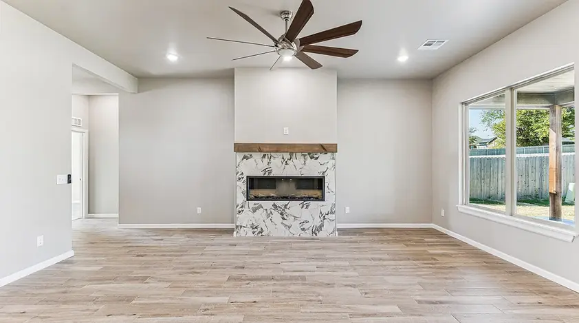 This 2,057 sq. ft. new construction home comes with a 10-year home warranty by RWC (Residential Warranty Company) and is ready for move-in. Located on a quiet cul-de-sac conveniently near the University of Oklahoma, this 4-bedroom, 2.5-bathroom home offers an open floor plan with a cozy electric fireplace in the living area. The beautiful features include quartz countertops, modern cabinetry with designer colors, stainless steel built-in dishwasher, gas stove, oven, and microwave. The large island with seating and spacious dining area makes it perfect for gatherings. Thoughtful details like built-in storage cabinets, modern fixtures, and stylish hardware are found throughout. This split-bedroom plan provides privacy with the primary suite separate from the other bedrooms. The primary bathroom boasts double vanities plus a separate tub and shower, along with a convenient pass-through from the primary closet to the laundry room just off the mudroom. Additional highlights include a powder bath, oversized 3-car garage, and a large covered back patio. You’ll love the modern designer colors and finishes that make this home truly stand out.